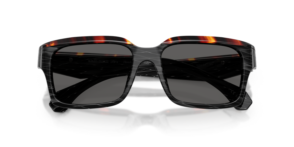 Elevate your eyewear game with Alain Mikli A05527 sunglasses. The clean, linear rectangular frames in sleek black acetate create a polished and structured silhouette. Designed with an understated yet bold aesthetic, the bi-tonal details are a testament to Mikli’s expert craftsmanship. Grey classic lenses offer a timeless appeal, while providing advanced UVA/UVB protection. These black sunglasses for men feature a universal fit that ensures all-day comfort, blending style and practicality seamlessly.