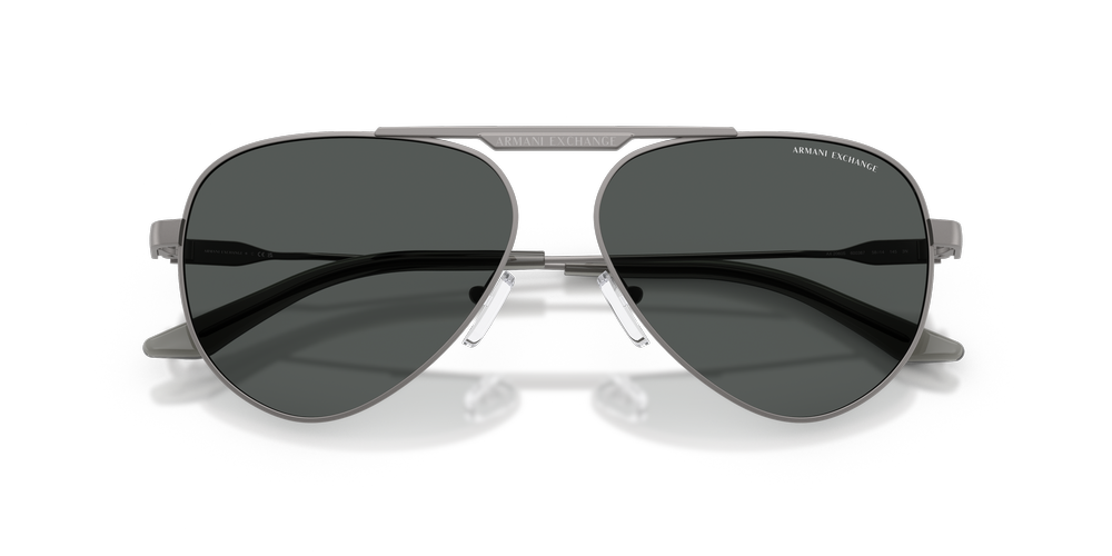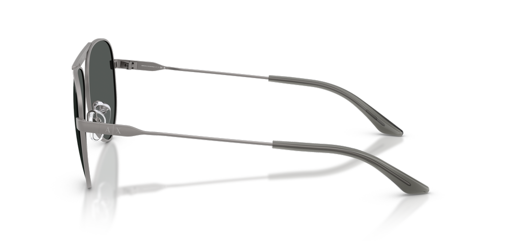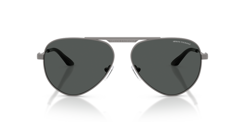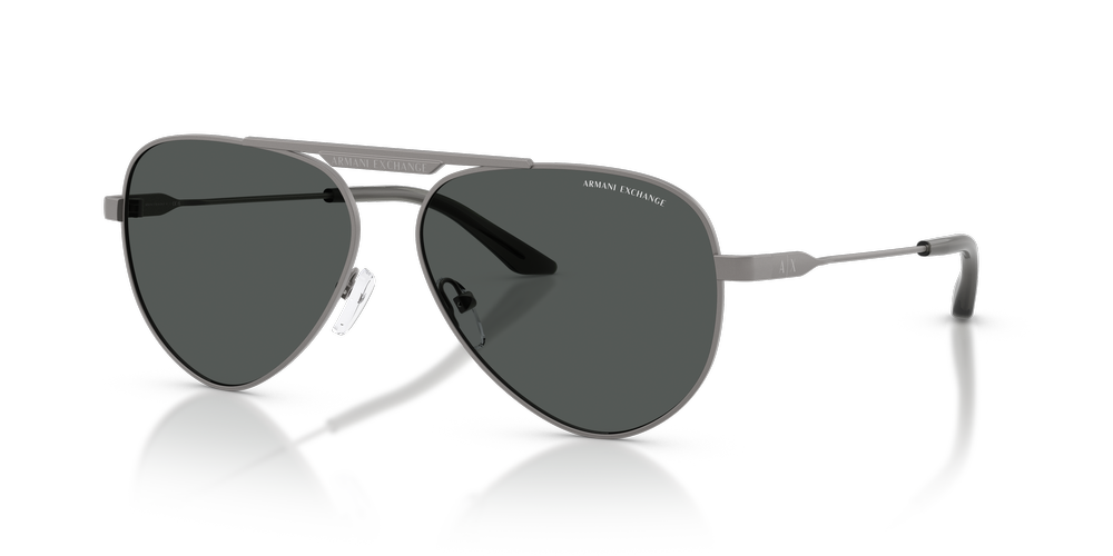 Stay effortlessly cool with the Armani Exchange AX2060S. These full-rim pilot sunglasses, crafted from lightweight metal, showcase a striking grey finish on both the lenses and frames. Featuring a teardrop silhouette with a sleek double bridge, adjustable nose pads enhance comfort and fit. Bold A|X branding on the temples and a refined lettering logo on the bridge inject signature flair. Perfect for adding a fresh, contemporary edge to any look.