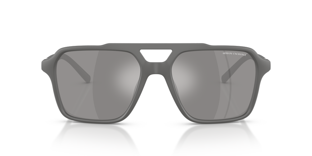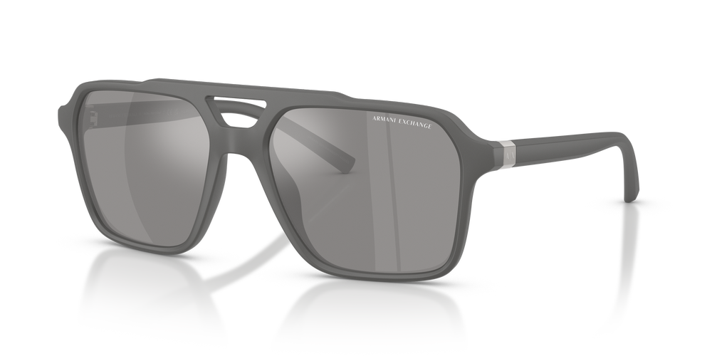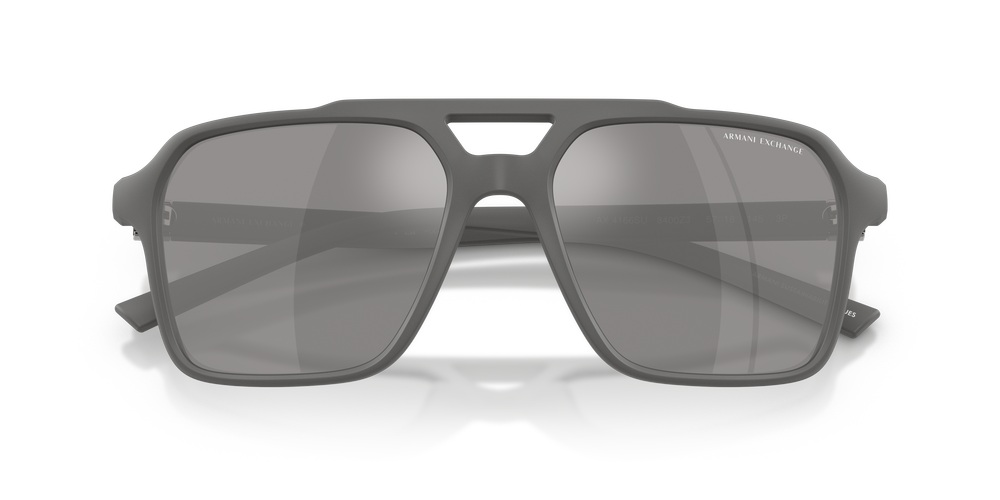 Bold and unmistakably Armani Exchange, the AX4166SU pilot sunglasses for men elevate a classic teardrop silhouette with a modern twist. Crafted from bio-based nylon fiber, the grey frames exude contemporary style, enhanced by a sleek metal plaque showcasing the iconic logo. Featuring mirrored, polarized sunglasses lenses in grey, they deliver superior glare reduction, contrast, and clarity. A matte finish and universal fit sunglasses design complete this fresh and masculine look—perfect for effortless, everyday sophistication.
