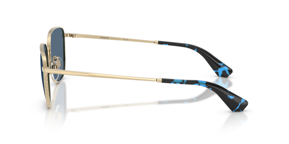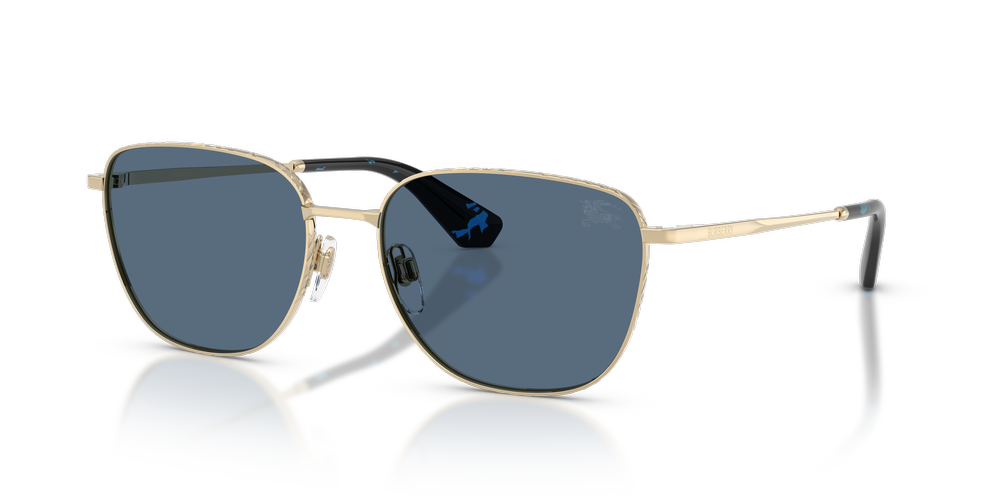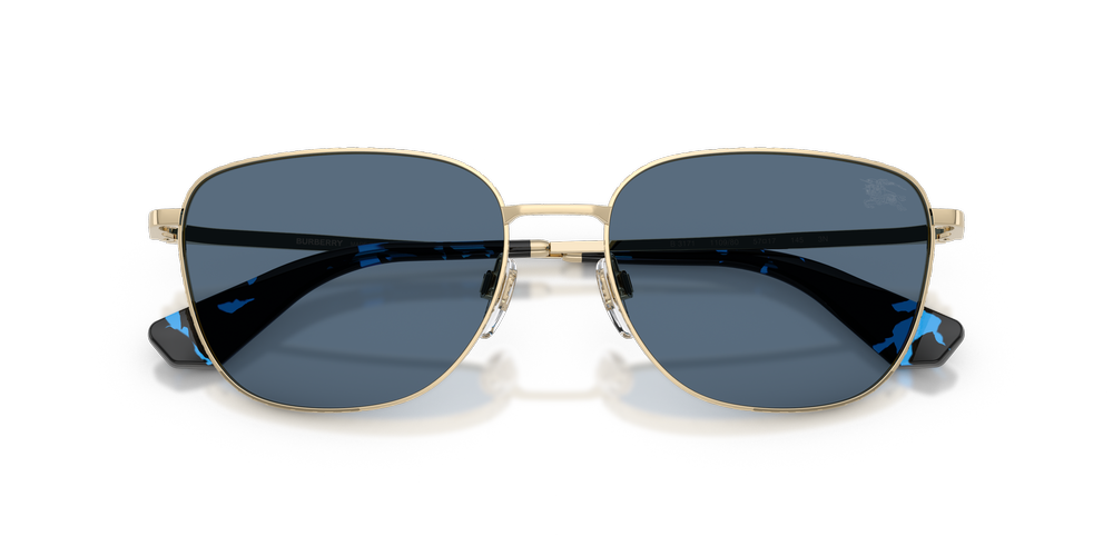 Elevate your style with the Burberry BE3171 sunglasses. These square sunglasses embody modern sophistication, featuring strong lines and sharp angles for a structured aesthetic. Crafted from lightweight metal in a radiant gold hue, they’re enhanced by adjustable nose pads for personalized comfort. The etched Burberry check along the rims and faceted temples with logo lettering add an iconic touch, while the sleek blue lenses exude timeless charm. A subtle Equestrian Knight Design graces the left lens, celebrating the brand’s heritage. Perfect sunglasses for men looking to command attention in any setting.