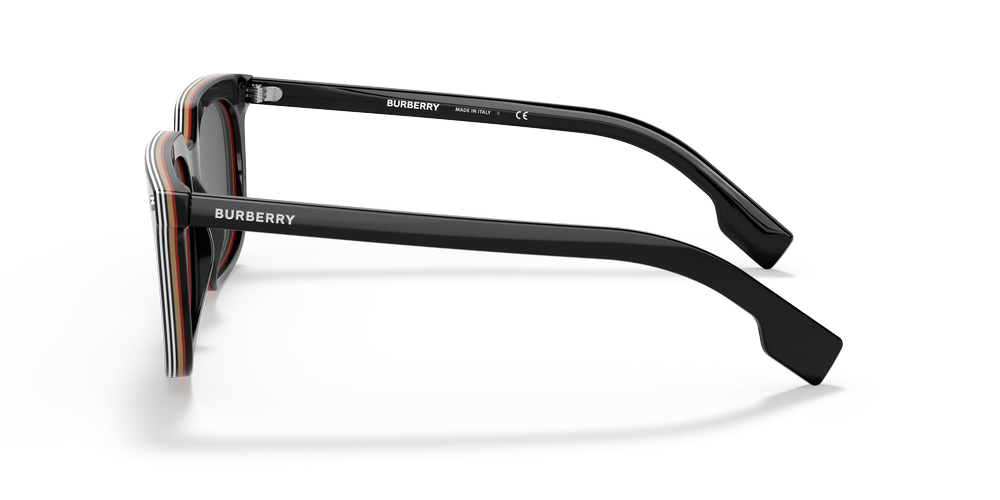 Modern square frame with 7 multilayers of acetate creating a rich icon stripe effect along the rim. Featuring signature bolt details tying to the Burberry Jewellery language.