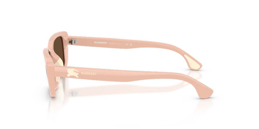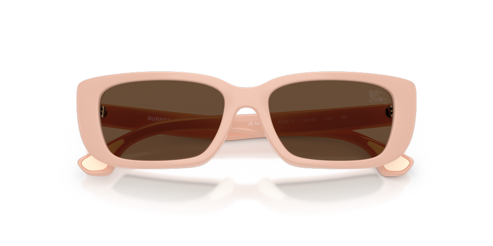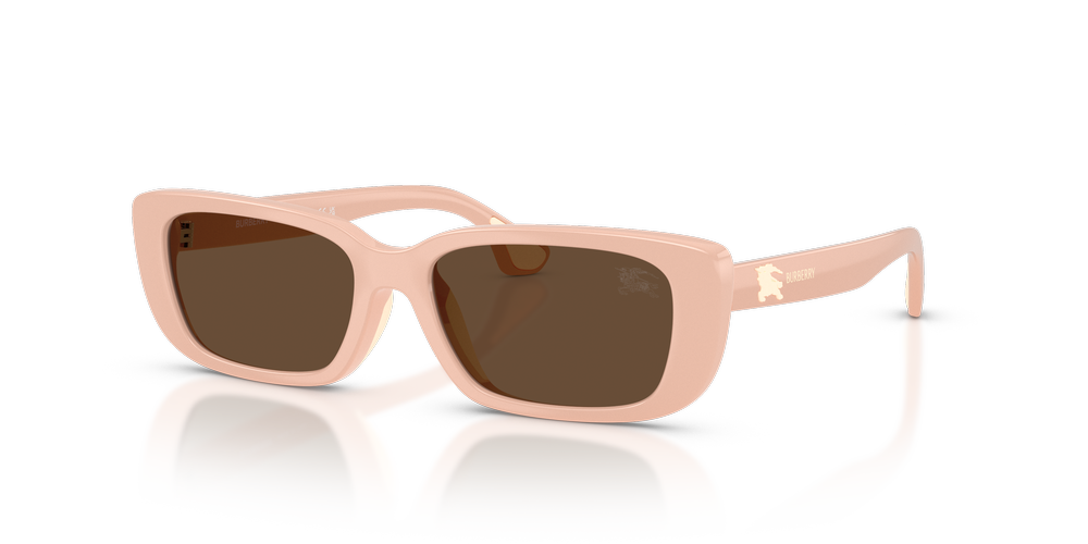 Made for style and comfort, the Burberry JB4006U sunglasses feature sleek rectangular frames crafted from lightweight bio-nylon. The pink frame front is paired with classic brown lenses for a polished look. A rubber Equestrian Knight Design and printed Burberry logo at the temples add a premium touch, while soft rubber pads ensure lasting ease. Perfect for kids who appreciate timeless elegance, these Burberry sunglasses are ideal childrens sunglasses for every occasion.
