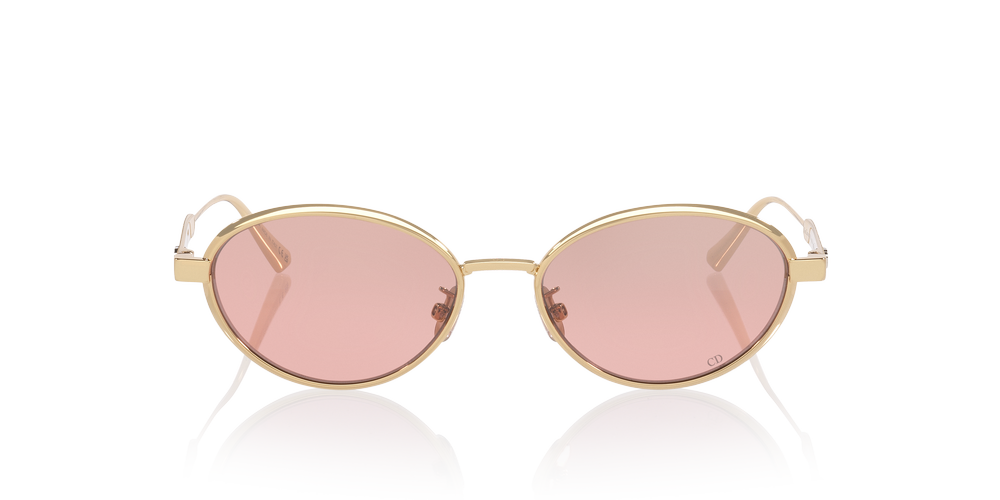 Elevate your style with the Diorcannage CD40209U sunglasses by DIOR. These lightweight metal frames feature a chic yellow hue and a versatile oval shape, exuding timeless elegance. The pink lenses, treated with a mirrored finish, add a bold metallic touch while reducing glare. Perfect for making a statement with Dior sunglasses in any setting.