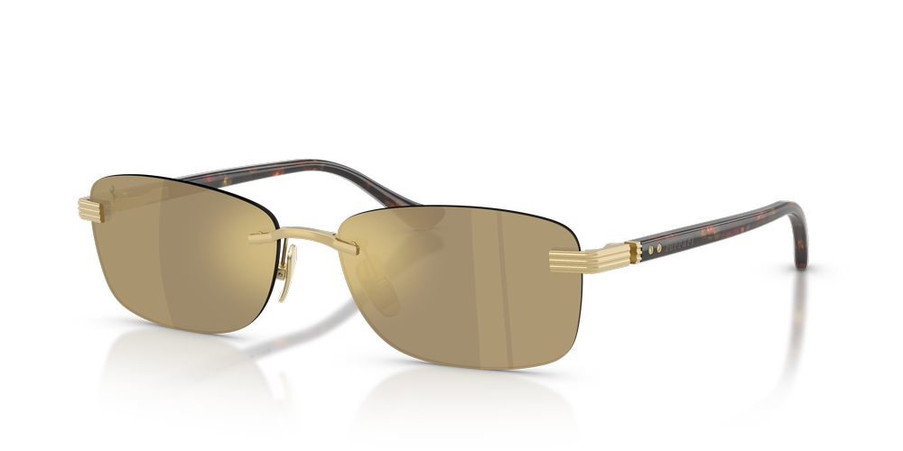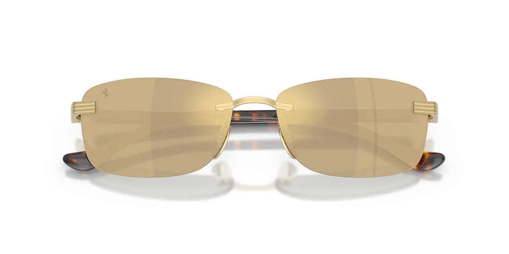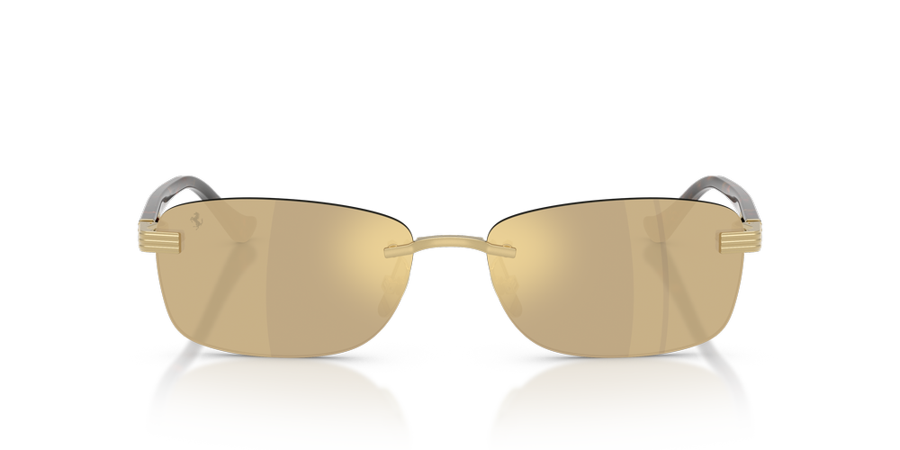 Elevate your style with Ferrari FH1029TD rimless sunglasses, crafted from premium titanium for a lightweight and durable design. The rectangular frames showcase clean lines that bring sleek definition, accented by acetate temples and a beta titanium flex hinge for added resilience. Finished with mirrored gold lenses that reduce glare and enhance light reflection, these Ferrari sunglasses offer advanced UVA/UVB protection for everyday wear. Perfect for those seeking a minimal yet striking look.