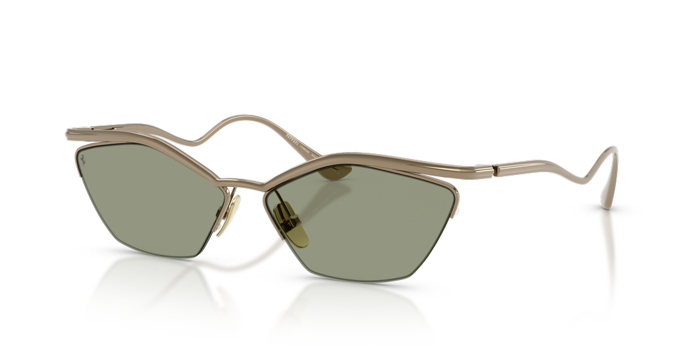 Turn heads with the Ferrari FH1030T gold sunglasses, a striking blend of luxury and innovation. Crafted entirely from lightweight and durable titanium, these semi-rim frames boast a modern cat-eye shape that exudes elegance. Featuring an adjustable nose bridge for enhanced comfort and green lenses with classic coloring, they offer a stylish charm while providing advanced UVA/UVB protection. Finished in a brilliant gold, these Ferrari sunglasses embody Ferrari’s iconic design ethos with sweeping curves and geometric precision.