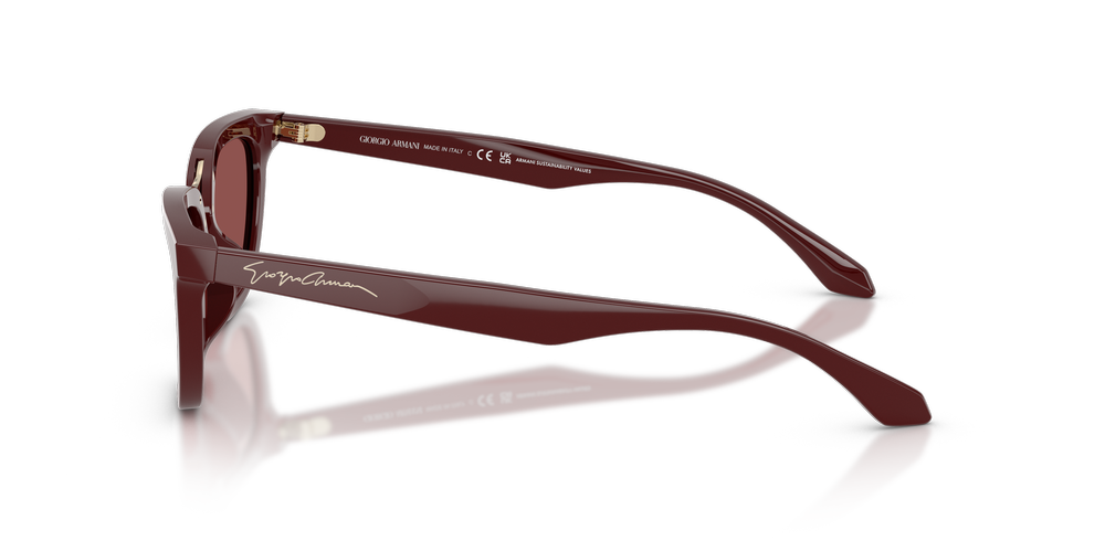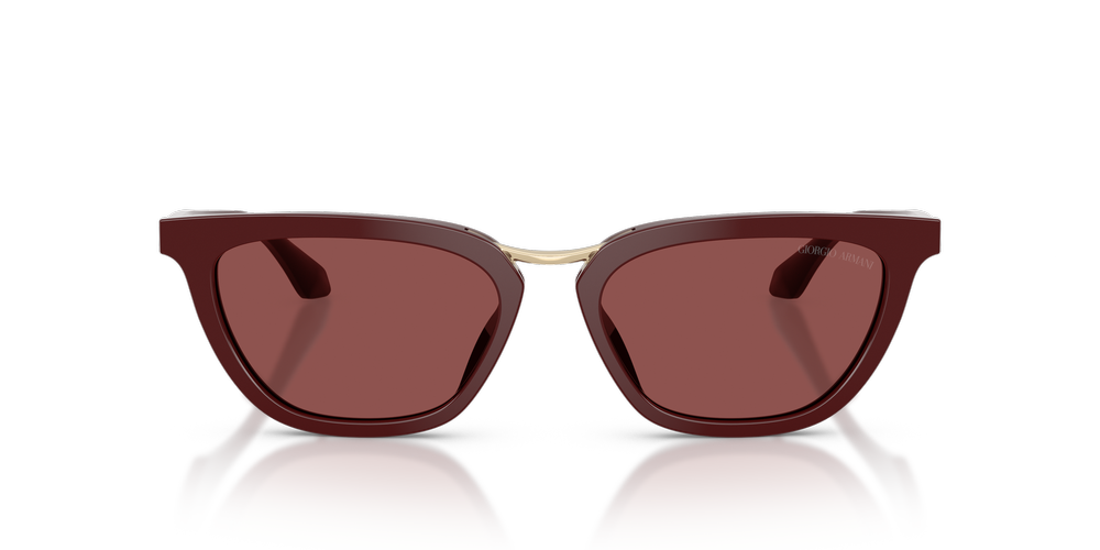 Elevate your style with the Giorgio Armani AR8253U butterfly sunglasses. These full-rim frames exude vintage-inspired glamour with their bold, upswept silhouette and striking red acetate material. Violet classic-tinted lenses bring a touch of mystery while offering advanced UVA/UVB protection. Featuring a universal fit and sleek architectural lines, they blend comfort and sophistication effortlessly.