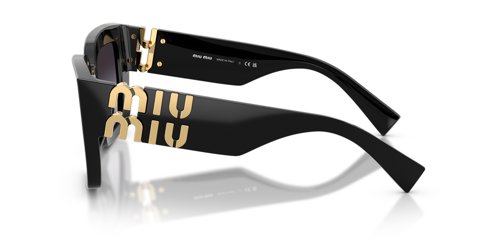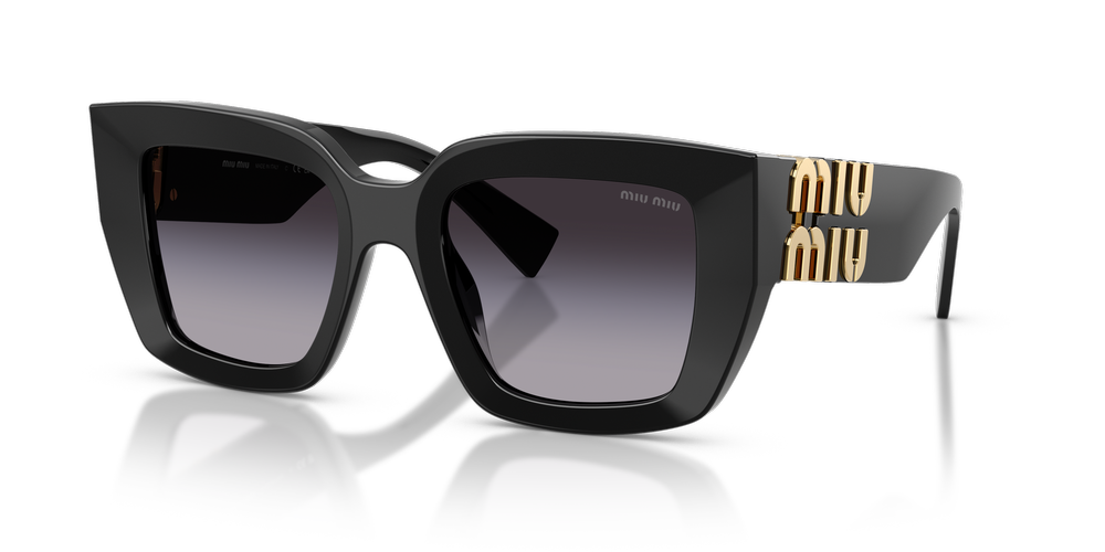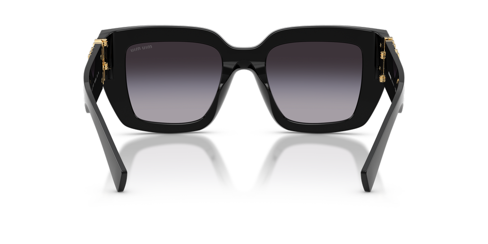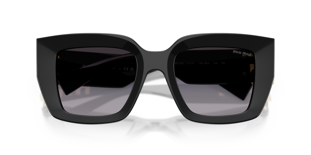 A modern interpretation of the iconic Miu Miu square frame, MU B05S is designed with a polished black finish and gradient grey lenses for an unmistakable style statement. The square shape and timeless allure are paired with a contemporary twist on color to create a fashionable yet versatile sunglass that effortlessly transitions from day to night. Elevating your look with its striking contrast between pastel shades and dark hues, this pair epitomizes sophisticated charm.