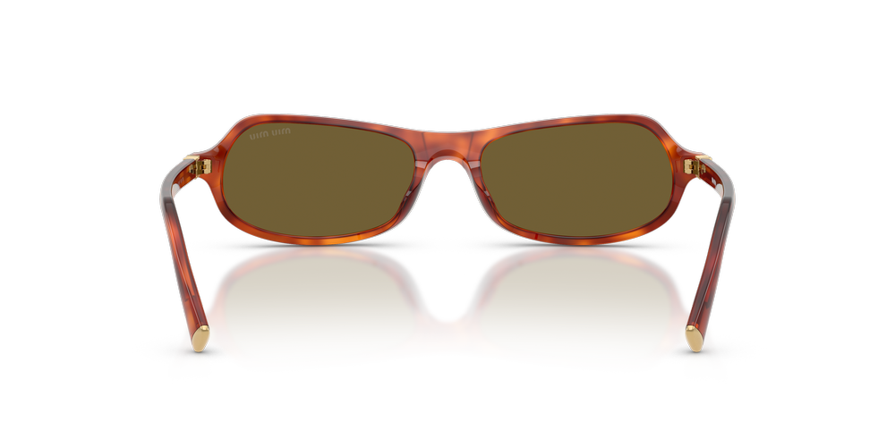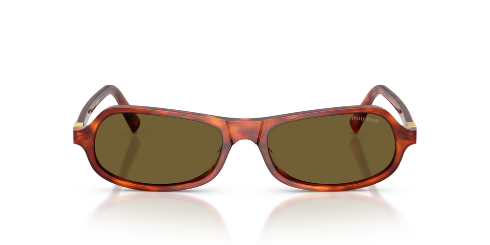 Make a bold statement with the MU B10SU sunglasses by Miu Miu. The irregular sunglasses, crafted from rich brown acetate, exude effortless sophistication with their unique asymmetrical design. Metal temples feature the iconic Miu Miu logo, adding a playful touch to the refined look. Classic brown lenses provide advanced UVA/UVB protection, while the sunglasses with a universal fit bridge ensure enduring comfort. Perfect for those who love eyewear that turns heads with style and substance.