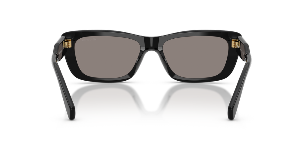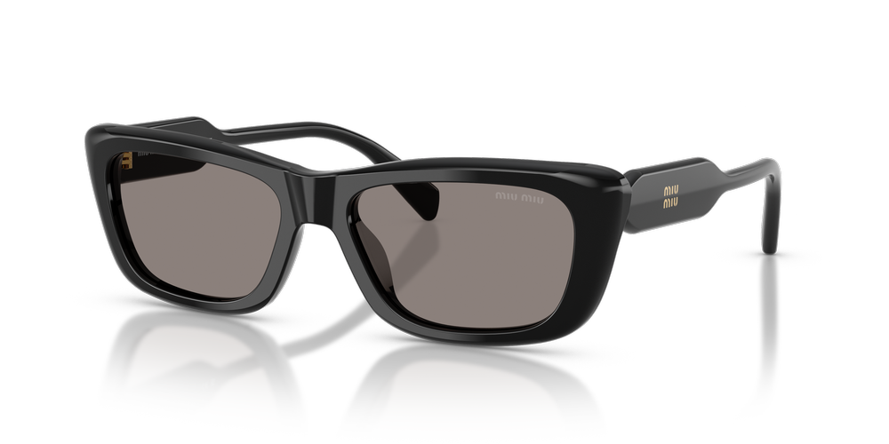 Elevate your style with the Miu Miu MU B12S sunglasses. Designed with bold rectangular frames, these black sunglasses bring sharp definition to your look while maintaining a timeless elegance. Crafted from acetate, the temples ensure comfort and durability, paired with sleek black frames for a polished finish. The grey lenses, with classic base coloring, exude sophistication and provide 100% UVA/UVB protection. Rounded temple profiles featuring the iconic Miu Miu logo add a distinctive touch. Perfect for making a statement while embracing everyday elegance.