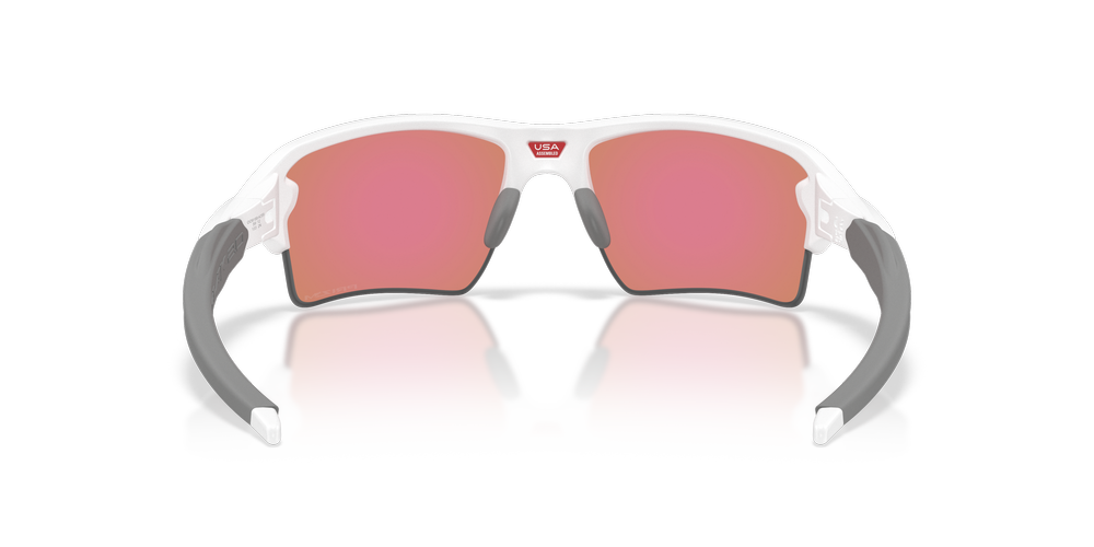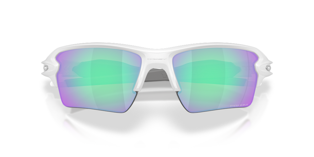 Push past limits with the Oakley OO9188 Flak® 2.0 XL On The Green Collection. Engineered for relentless performance, these rectangular Oakley sunglasses boast a lightweight yet durable combination of nylon and propionate frames in sleek white, offering optimal structure and definition. These white sunglasses feature violet mirrored lenses with advanced contrast enhancement and a reflective coating to shield against intense light and glare, giving you the confidence to stay focused under any conditions. Injected temples ensure a secure and comfortable fit as you keep your momentum. Designed to empower athletes at every level, these mirrored sunglasses are a bold statement in precision and innovation.