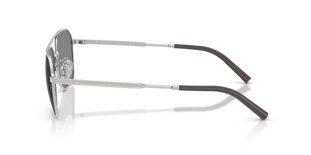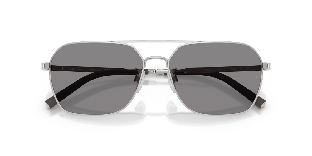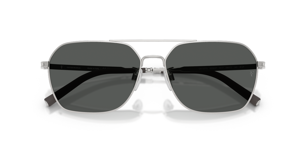 The OV1377S R-17 by Oliver Peoples combines angular sophistication with elevated craftsmanship. These irregular sunglasses feature silver frames in a lightweight design, offering a striking yet timeless aesthetic. With advanced polarized lenses in classic grey, these sunglasses for men reduce glare and enhance clarity for unrivaled visual performance. Adjustable nosepads ensure an exceptional fit, while the photochromic treatment adapts seamlessly to changing light conditions. Designed in collaboration with Roger Federer, the OV1377S R-17 delivers luxury and comfort with effortless style.