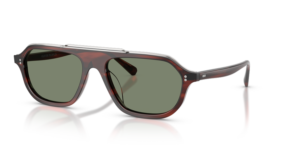 The OV5613SU Estin by Oliver Peoples embodies a seamless fusion of vintage-inspired design and modern sophistication. Crafted in Japan, these irregular sunglasses showcase a distinctive 1970s aesthetic, highlighted by a one-piece metal top bar elegantly positioned above a refined brown acetate frame front. The rich tones are complemented by classic grey lenses for a timeless appeal. Acetate temples ensure comfort, making this pair of Oliver Peoples sunglasses both striking and effortlessly wearable.