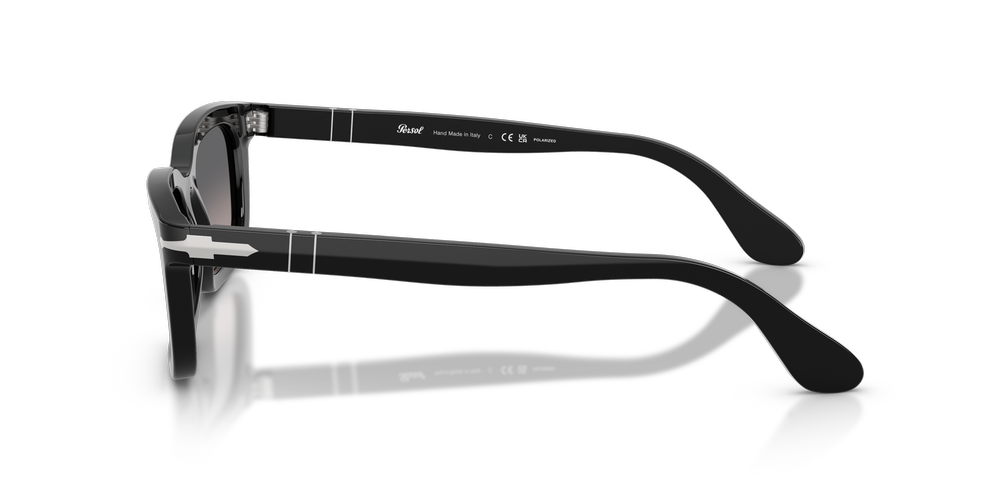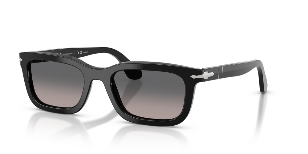 Elevate your everyday style with the Persol PO3396S sunglasses. Crafted from refined black acetate, these black sunglasses feature rectangular frames with clean, linear lines that exude understated sophistication. Thin acetate temples enhance the streamlined design and showcase the iconic Persol Supreme Arrow detail. The grey gradient lenses, equipped with polarized technology, reduce glare and reflections for improved clarity and effortless vision in any light. Timeless and confident, these handcrafted Persol sunglasses embody Italian craftsmanship at its finest.