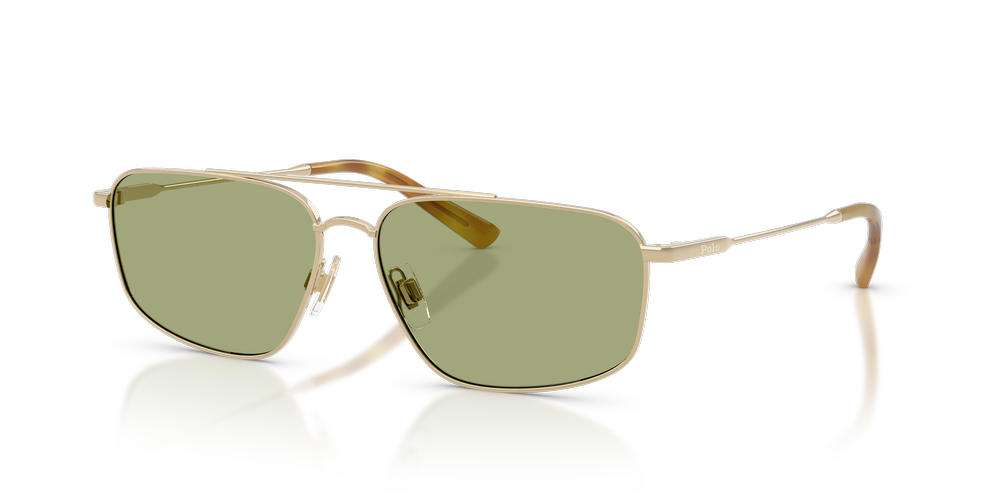 Elevate your style with the Polo Ralph Lauren PH3164 sunglasses. Featuring sleek, gold rectangular metal frames, they blend contemporary flair with structured sophistication. The double-bridge design creates a bold focal point, while adjustable nosepads sunglasses enhance comfort. Finished with green classic lenses and refined temple detailing, they exude modern elegance for every occasion.