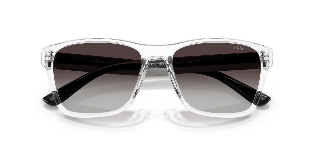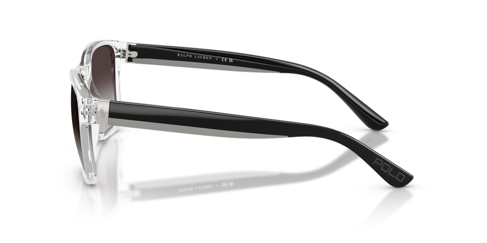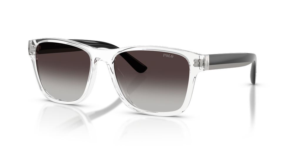 The PH4229U sunglasses by Polo Ralph Lauren combine retro sportswear vibes with contemporary style. Crafted from polished nylon and propionate, the transparent square sunglasses frames deliver a bold, structured look. Gradient grey lenses enhance the design while offering advanced UVA/UVB protection. Injected temples feature classic lettering and the Pony Player emblem for signature brand flair.