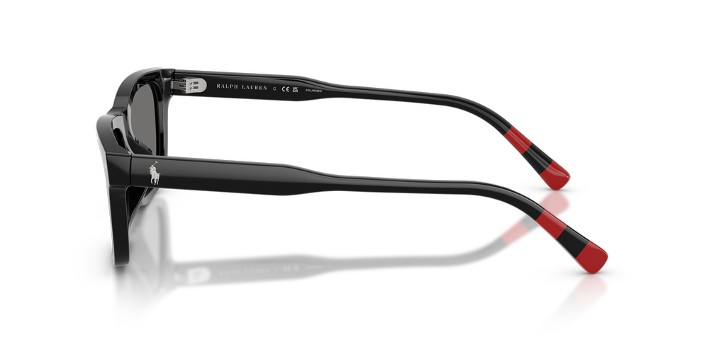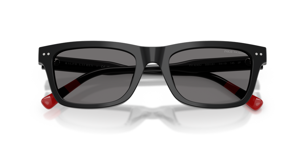 Embrace sporty sophistication with the Polo Ralph Lauren PH4240U black sunglasses. Crafted in a rectangular shape, the full-rim acetate frames offer sleek definition, while the universal fit ensures comfort. Featuring a timeless black finish and grey polarized lenses, they reduce glare for enhanced clarity. Distinguished by metal front pins, rugby-inspired temple stripes, and the iconic Pony Player logo, these polarized sunglasses celebrate Polo’s athletic heritage with a refined edge.