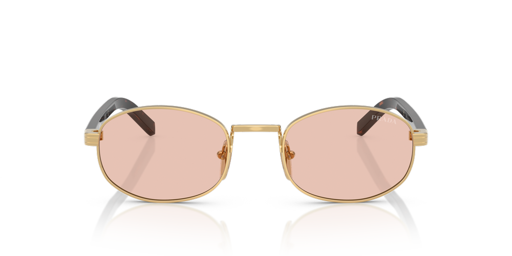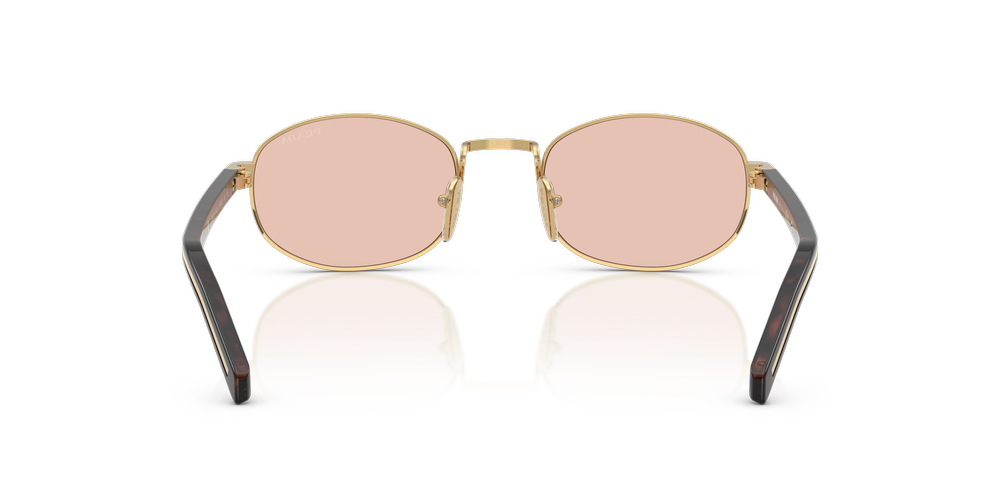 Elevate your style with the Prada PR B53S sunglasses, a modern take on timeless elegance. The narrow oval frames, crafted from lightweight metal, feature soft, rounded contours for a versatile appeal. The gold sunglasses boast a gold-toned finish that pairs beautifully with the classic pink lenses, bringing sophistication to any outfit. Adjustable nosepads ensure optimal comfort, while the acetate temples showcase Prada’s iconic plaque design with subtle logo engraving. A harmonious blend of luxurious materials and hues, these Prada sunglasses reflect Prada’s signature refinement.