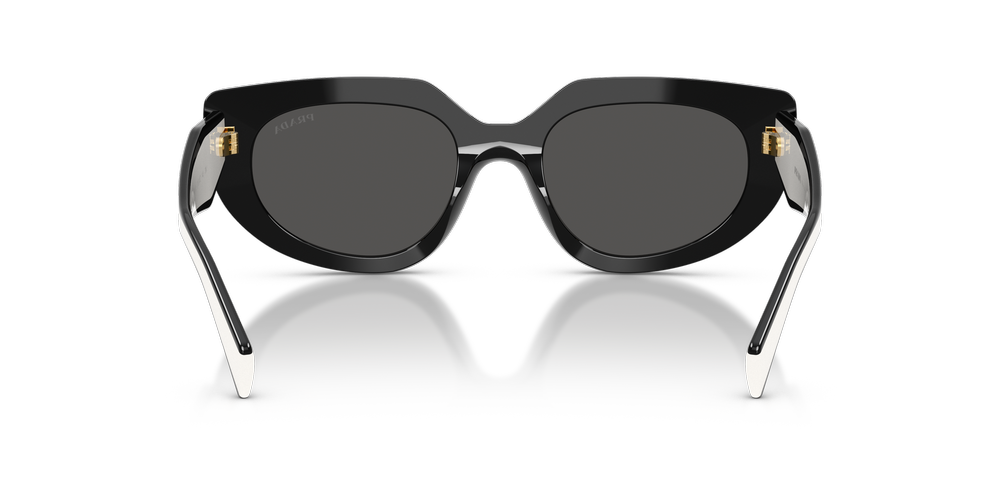 Elevate your look with the Prada PR D02S sunglasses, a chic blend of creativity and craftsmanship. The oval sunglasses, designed with rounded contours, offer timeless elegance, while the angular browline adds a modern edge. Made entirely from polished acetate, the temples showcase the iconic Prada Milano logo, paired with a striking two-tone contrast for added intrigue. Finished with a classic black front and grey lenses, these black sunglasses deliver effortless style and advanced UVA/UVB protection.