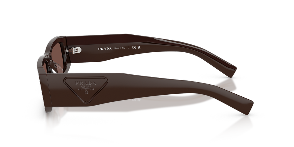 The Prada PR D09SD sunglasses exude bold sophistication with their rectangular full-rim frames. Crafted entirely from high-density acetate, they offer a refined, polished finish. The sleek low bridge fit enhances comfort, making them ideal sunglasses for men seeking both style and practicality. Featuring a rich brown hue and classic brown lenses with advanced UVA/UVB protection, these Prada sunglasses are a timeless statement in luxury. Prada’s iconic triangle logo adds a signature touch of elegance to this fearless design.