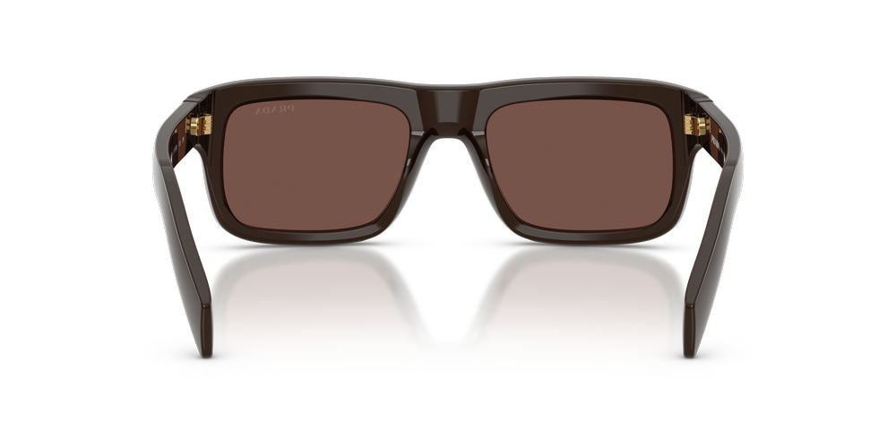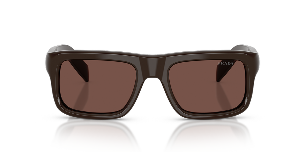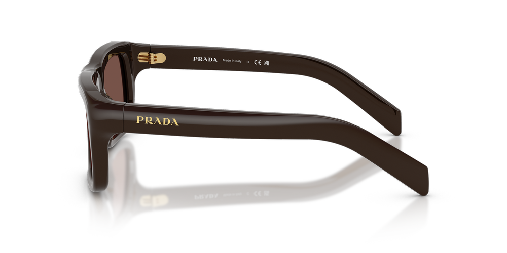Make a bold statement with the Prada PR D11S sunglasses. Crafted from puffed acetate, the voluminous rectangular frames add dimensionality and refined structure. The sleek temples, with a laser-engraved Prada logo in white enamel, exude elevated sophistication. Finished with brown lenses, this classic pair of Prada sunglasses offers unmatched style and timeless appeal.