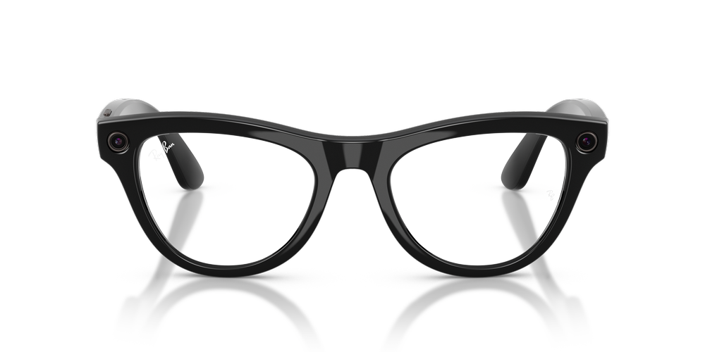 Ray-Ban | Meta Skyler are a new generation of smart glasses that seamlessly integrate technology into your everyday life. These frames, with their polished black finish and transitions® lenses in clear/graphite green, are perfect for those who want to stay connected without missing a beat. The cat-eye shape adds an extra touch of style to these innovative frames so you can look as good as you feel.