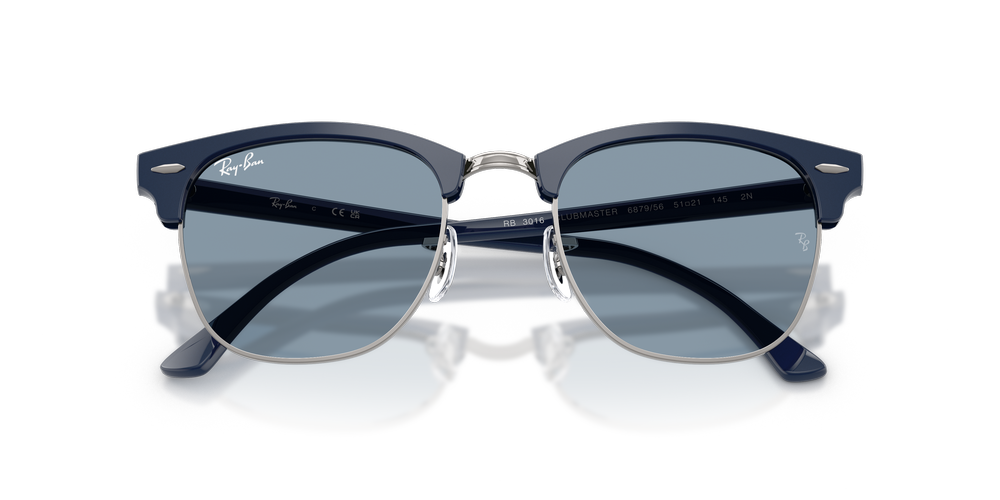 A true icon since 1986, the RB3016 Clubmaster blends retro intellect with modern edge. These square sunglasses feature sharp angles and strong lines, reimagined with new minimalist details and a bold blue acetate design. The adjustable nosepads sunglasses offer enhanced comfort, while the classic blue lenses deliver 100% UVA/UVB protection. Effortlessly stylish and timeless, the Clubmaster remains a symbol of smooth, standout design.