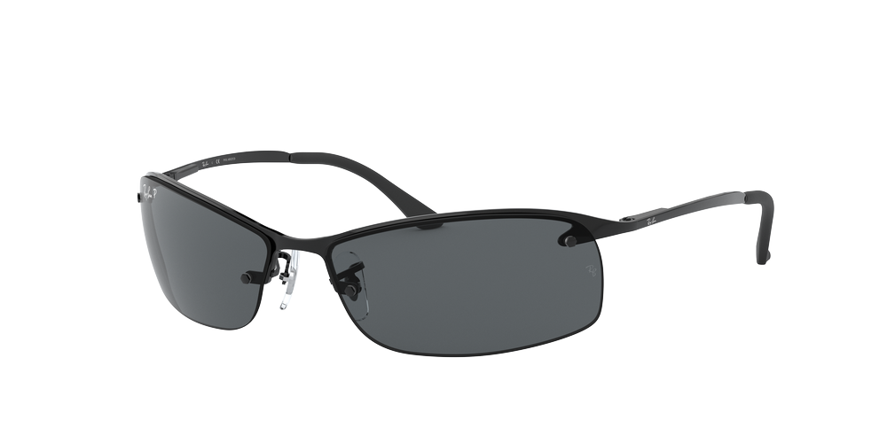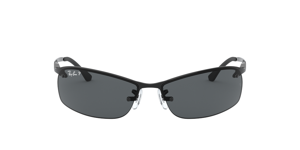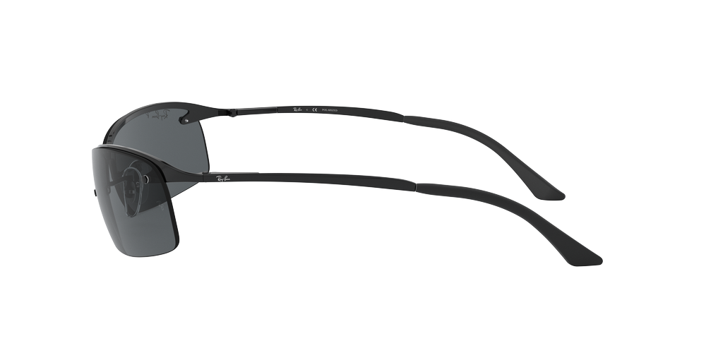 Ray-Ban RB3183 sunglasses are a modern and unique take on the rectangle shape frame that has been popular since the beginning of sunglasses. The metal frame gives these shades a shiny black finish, while the dark grey polarized lenses provide maximum protection from UV rays with style. Wear these shades to match your look with an urban edge.