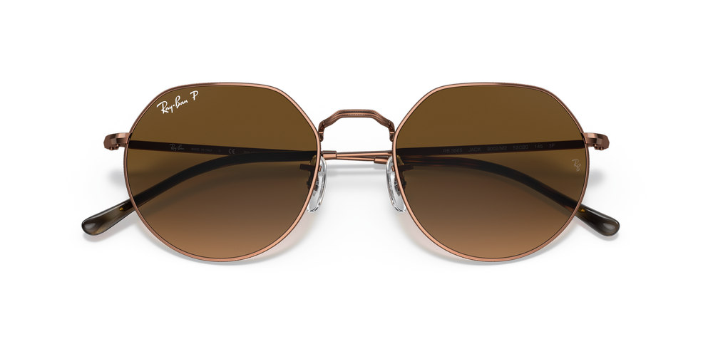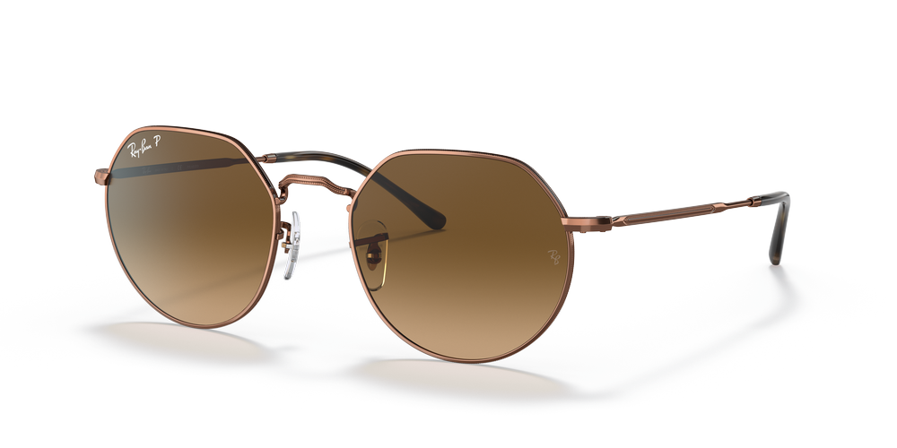 A modern take on a vintage metal frame, Ray-Ban JACK is ready to hit the streets. These unisex sunglasses feature an irregular shape with metal frames in medium copper color and gradient brown lenses. The perfect choice for those who want to stand out from the crowd, these shades will keep you looking sharp day and night.