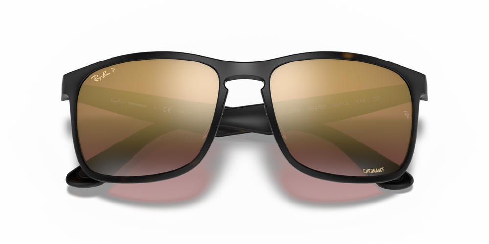Introducing Ray-Ban RB4264 Chromance, a new square-shaped frame that takes your look to the next level. The matte havana frames are paired with polarized purple chromance lenses for a unique and stylish statement. These sunglasses feature a key bridge for an iconic touch, while the square shape creates an on-trend aesthetic that’s perfect for any occasion. Available with lens contrast enhancement technology.