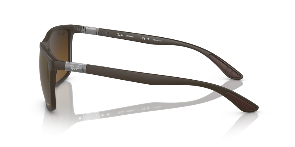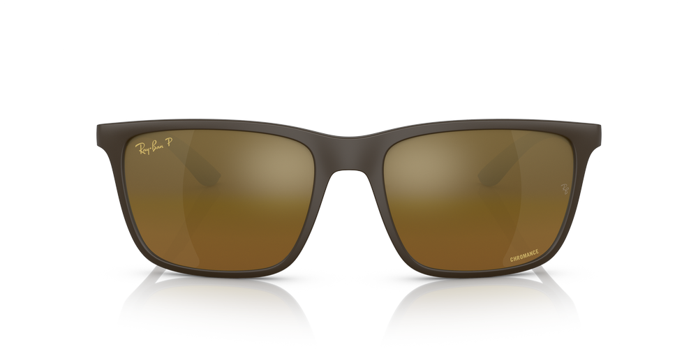 Ray-Ban RB4385 are a modern take on the rectangle shape, designed with a peek material frame and matte finish. These sunglasses have been crafted with brown/gold polarized lenses to ensure optimal vision and protection. Wear them in the office or at the beach; these versatile shades will add an instant touch of style to any outfit. Available with lens contrast enhancement technology.