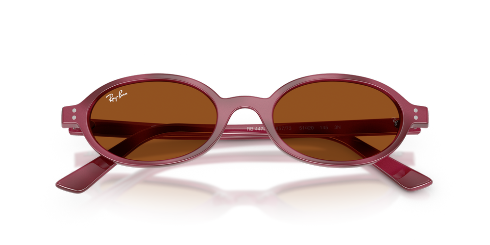 Ray-Ban RB4472 sunglasses capture effortless, fashion-forward style with a slim, oval shape that exudes timeless elegance. Crafted from nylon and propionate, the full-rim design in vibrant violet brings a bold yet versatile edge to your look. These violet sunglasses feature brown classic lenses that add warmth and sophistication, while providing advanced 100% UVA/UVB protection. Iconic Ray-Ban design elements meet contemporary energy, making these oval Ray-Ban sunglasses a must-have for those who embrace fresh interpretations of eyewear.