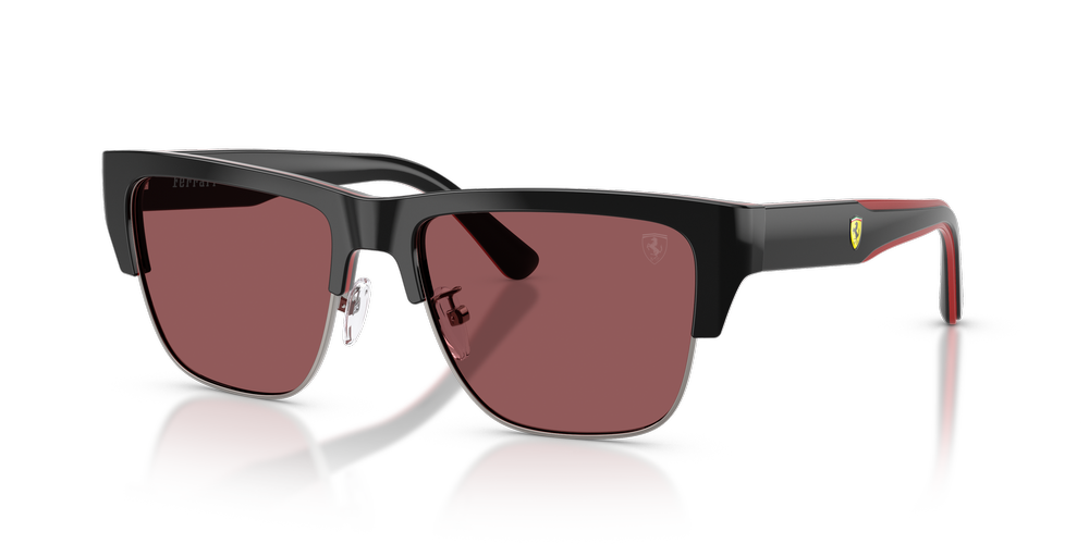 Elevate your style with the Scuderia Ferrari FZ6026 sunglasses. These square sunglasses for men boast sharp angles and a modern, structured aesthetic, crafted from trilayer acetate for a sporty and polished finish. The black full-rim design exudes bold sophistication, while the adjustable nose pads ensure a comfortable, custom fit. Red classic lenses enhance contrast for a sharper view, embodying both dynamic performance and iconic Scuderia Ferrari flair. Perfect for an active and sleek look.