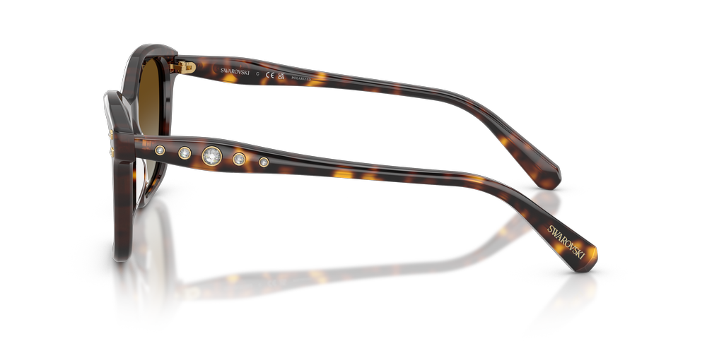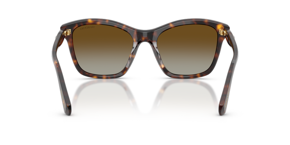 Elevate your everyday style with the Swarovski SK6063 sunglasses. Crafted from polished acetate, these square frames stand out with sharp angles and strong lines for a modern, structured look. A single crystal line on each temple and two bezel-set round crystals add a refined touch to their tortoise finish. The gradient brown lenses feature advanced polar technology, reducing glare while enhancing clarity and contrast. Experience premium comfort and dazzling elegance in any light.