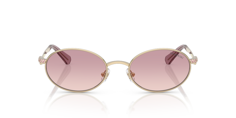 Add a touch of brilliance to your look with the Swarovski SK7033 sunglasses. These lightweight, full-rim oval sunglasses offer classic elegance with soft contours, complemented by a striking gold finish. Featuring adjustable nosepads for enhanced comfort and accented with dazzling strass crystal embellishments, they exude refined luxury. The brown gradient sunglasses lenses provide advanced UVA/UVB protection, making these Swarovski sunglasses as functional as they are fashionable.