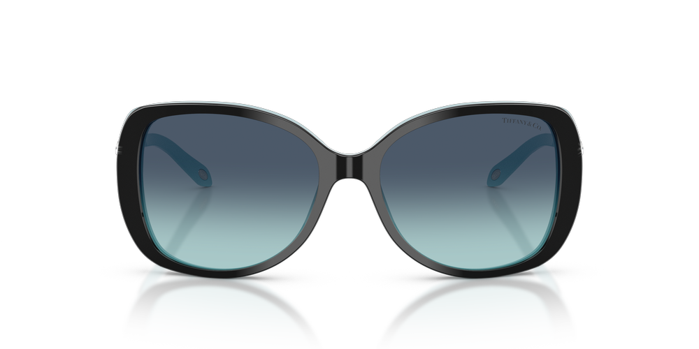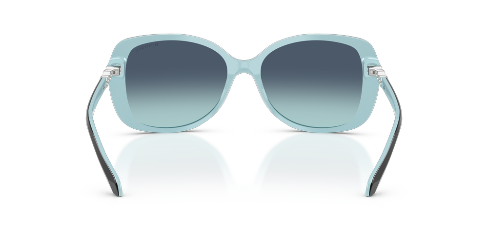 The unique and iconic style of Tiffany & Co. is now available in a stunning sunglasses collection. With its exquisite craftsmanship and innovative design, these sunglasses are the epitome of luxury. Crafted from high-quality materials for long-lasting wear, this rectangular shape features a black on tiffany blue color with strass on the front and temples, all set on the signature gradient lens. Embrace the timeless elegance of Tiffany & Co., where past meets present to create a truly unforgettable experience.