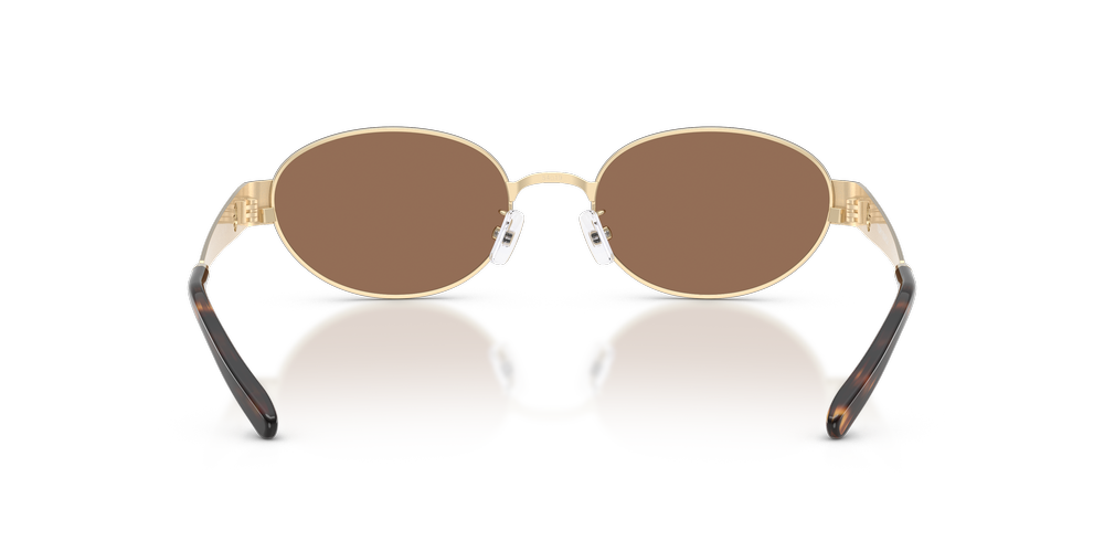 Elevate your style with Tory Burch TY6116 sunglasses, designed for those who embrace sophistication and comfort. Crafted from metal material with an oval shape, these shades exude elegance and allure with their shiny light gold frame finish paired with dark brown lenses. Embrace the spirit of innovation and tradition that has made Tory Burch a household name across the globe.