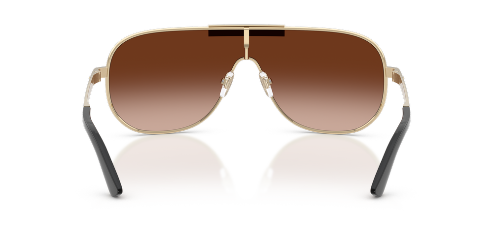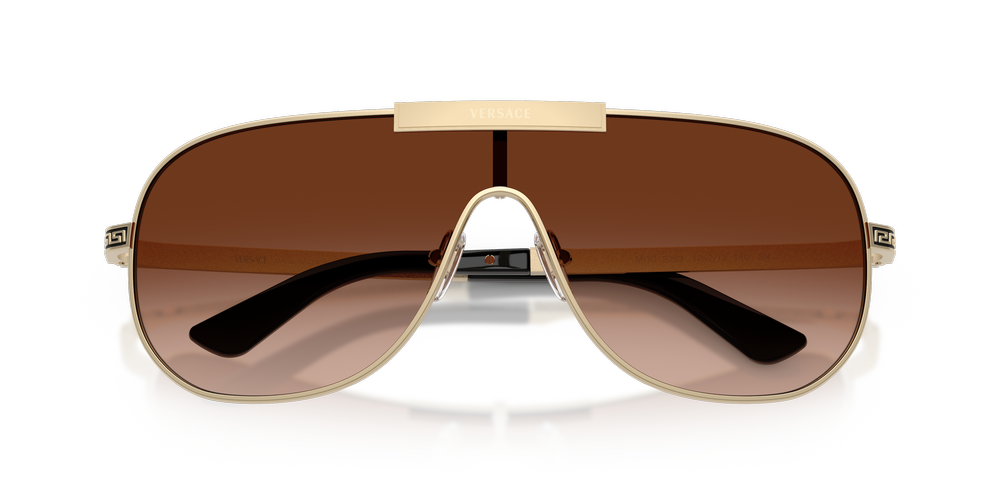 Discover the ultimate statement piece with Versace VE2293 sunglasses. These irregular sunglasses feature full-rim frames, crafted from lightweight metal in a striking gold tone, offering a bold silhouette inspired by the brand’s iconic design heritage. The gradient brown lenses provide advanced 100% UVA/UVB protection, while adjustable nosepads sunglasses ensure tailored comfort. Finished with a laser-engraved Versace plaque on the top bar, these Versace sunglasses elevate any look with signature luxury and flair.