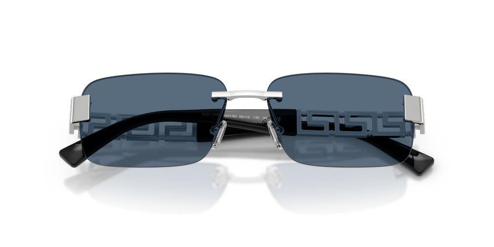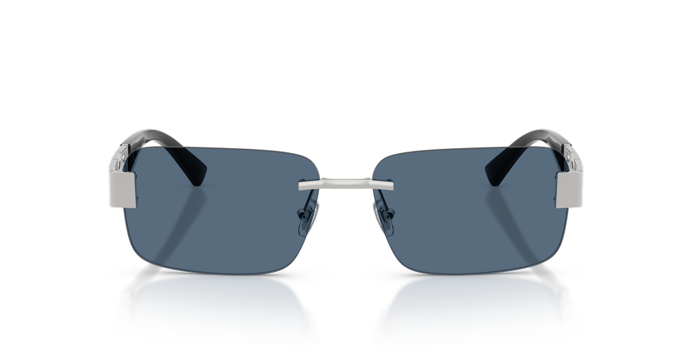 Effortlessly modern, the Versace VE2298 sunglasses combine minimalist rimless design with sleek rectangular frames for a refined look. Crafted with lightweight metal temples and an adjustable nosepad bridge for added comfort, these Versace sunglasses bring elegance to everyday wear. Finished with silver tones and classic blue lenses, they deliver style that’s both timeless and contemporary.