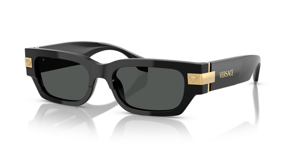 Express your unique style with the Versace VE4465 sunglasses. The solid dark grey lenses provide a touch of mystery, while the polished black frame adds an air of sophistication. These rectangle shades are designed to impress and inspire, embodying all that is iconic about the Versace brand. Embrace timeless elegance and embrace the allure of these exquisite frames crafted from durable yet flexible acetate material.