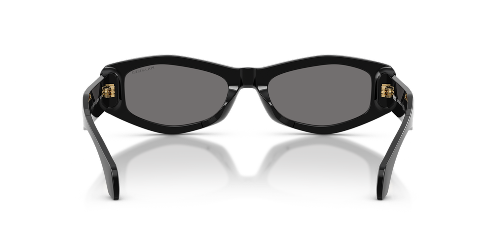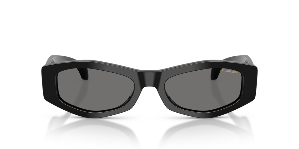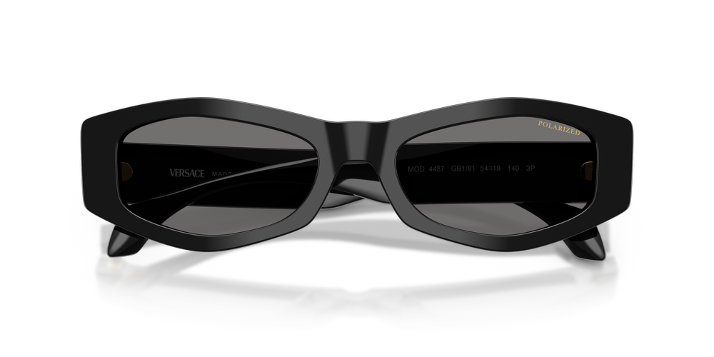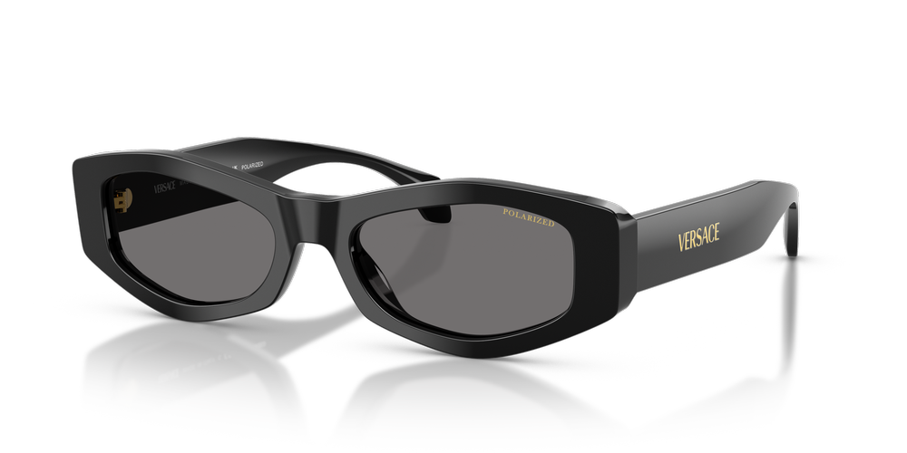 Elevate your style with Versace VE4487 sunglasses. The solid dark grey polarized lenses provide a sophisticated aesthetic, while the irregular frame shape adds an element of modernity to this iconic design. Crafted from premium acetate material, these sunglasses feature a black color and polished finish that exudes timeless elegance. Embrace the allure of the past and present with this exquisite fusion of heritage and contemporary flair, courtesy of Versace.