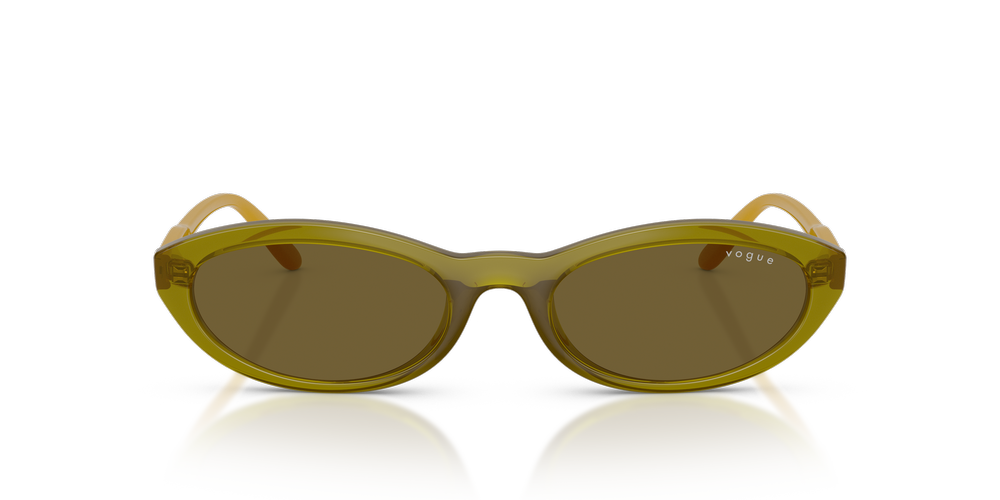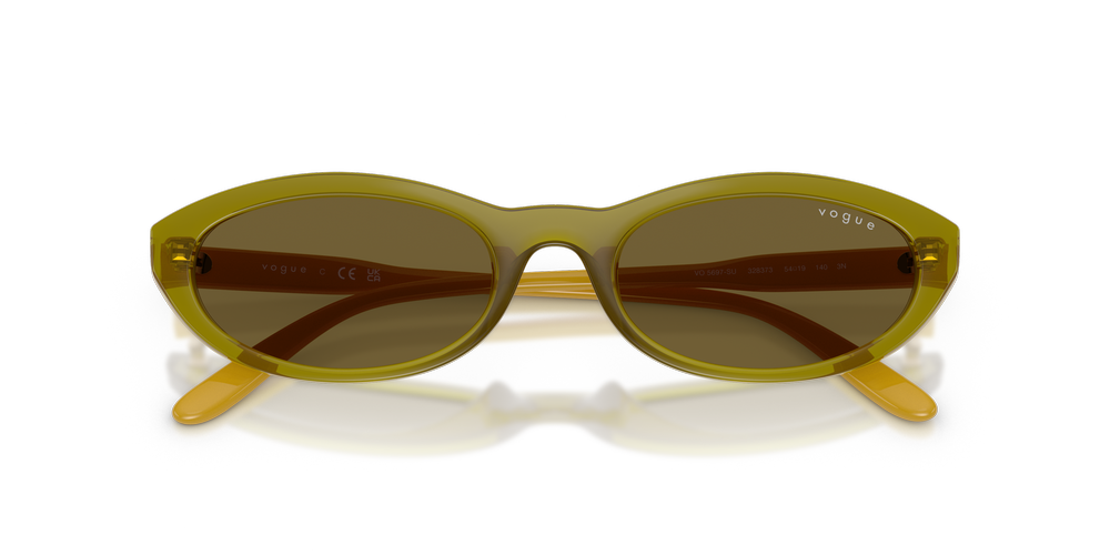 Elevate your look with the Vogue Eyewear VO5697SU sunglasses. Crafted from nylon and propionate, the lightweight oval sunglasses blend retro charm with contemporary sophistication. The sleek temples, adorned with the Vogue Eyewear logo, add a stylish touch. Finished with trendy green frames and classic brown lenses, these green sunglasses offer effortless elegance and a pop of color for versatile styling.